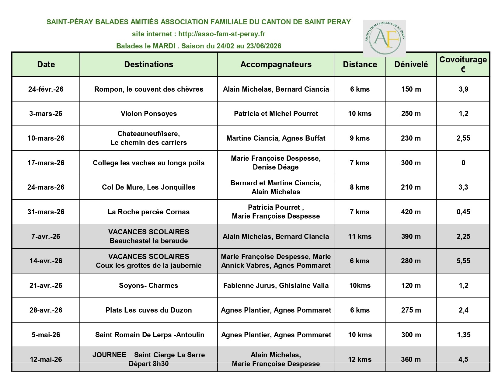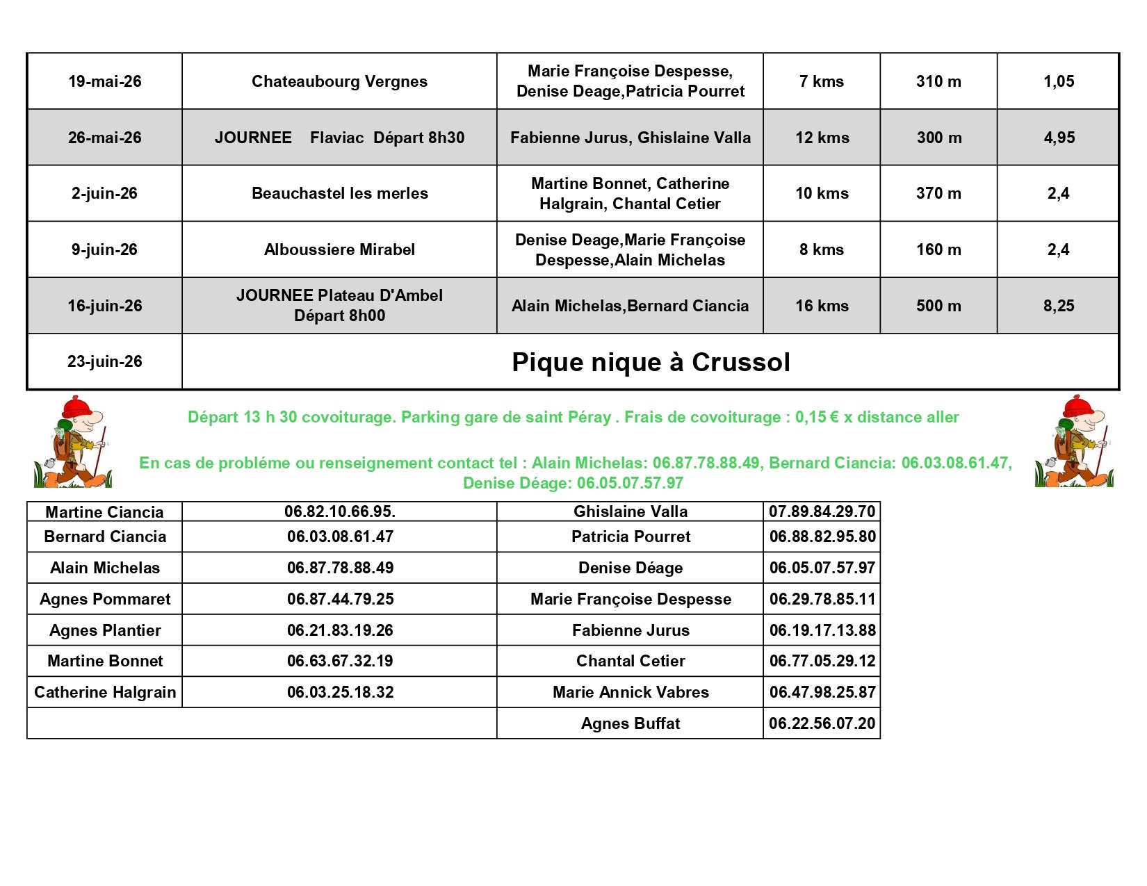 Programme des marches de Septembre 2025 à <fevrier 2026 :